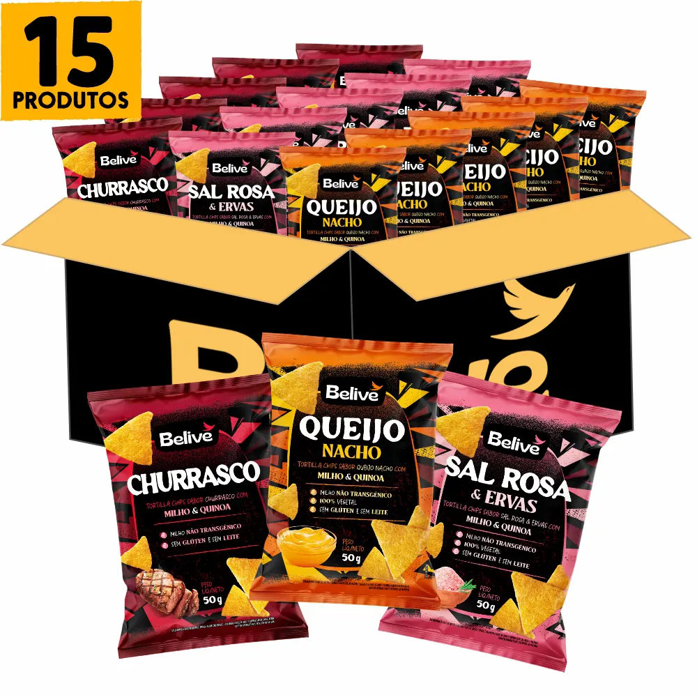 – 5 unid Tortilla Chips sabor Queijo Nacho Sem Glúten Sem Leite Belive